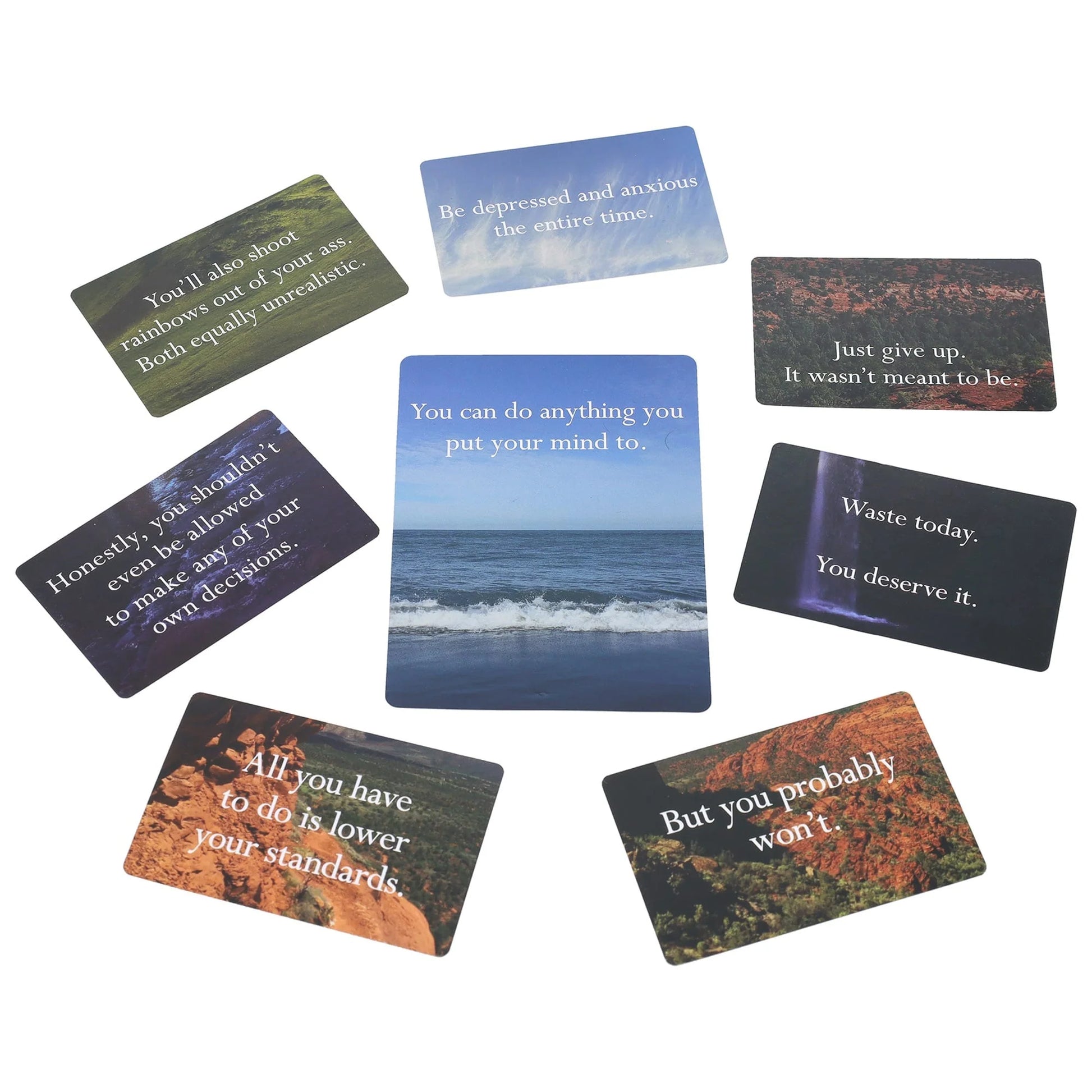 This game turns pessimism into points, so it's a good use of your bad attitude! It will test the convictions of your most optimistic friends. So, let go of all that relentless toxic positivity you’ve been sold and get real.
