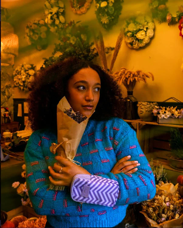 A purse with two pockets and an elastic strap to sit comfortably on your wrist. Holds your smart phone, cash, keys and other essentials so you can be hands-free.