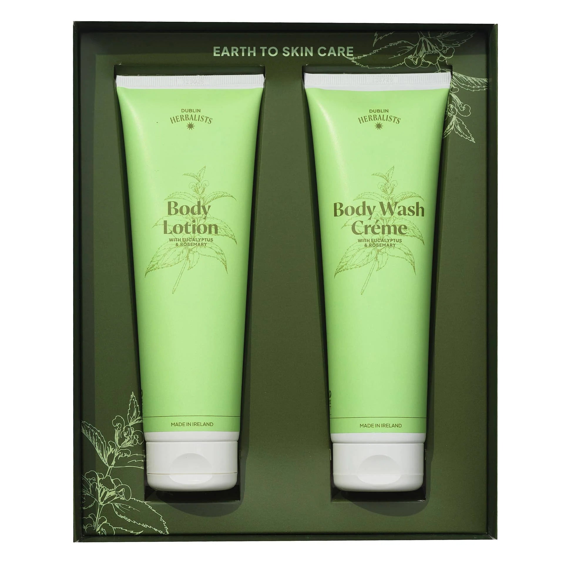 Contains 300ml tubes of Body wash creme and Body lotion in a Eucalyptus & Rosemary scent.