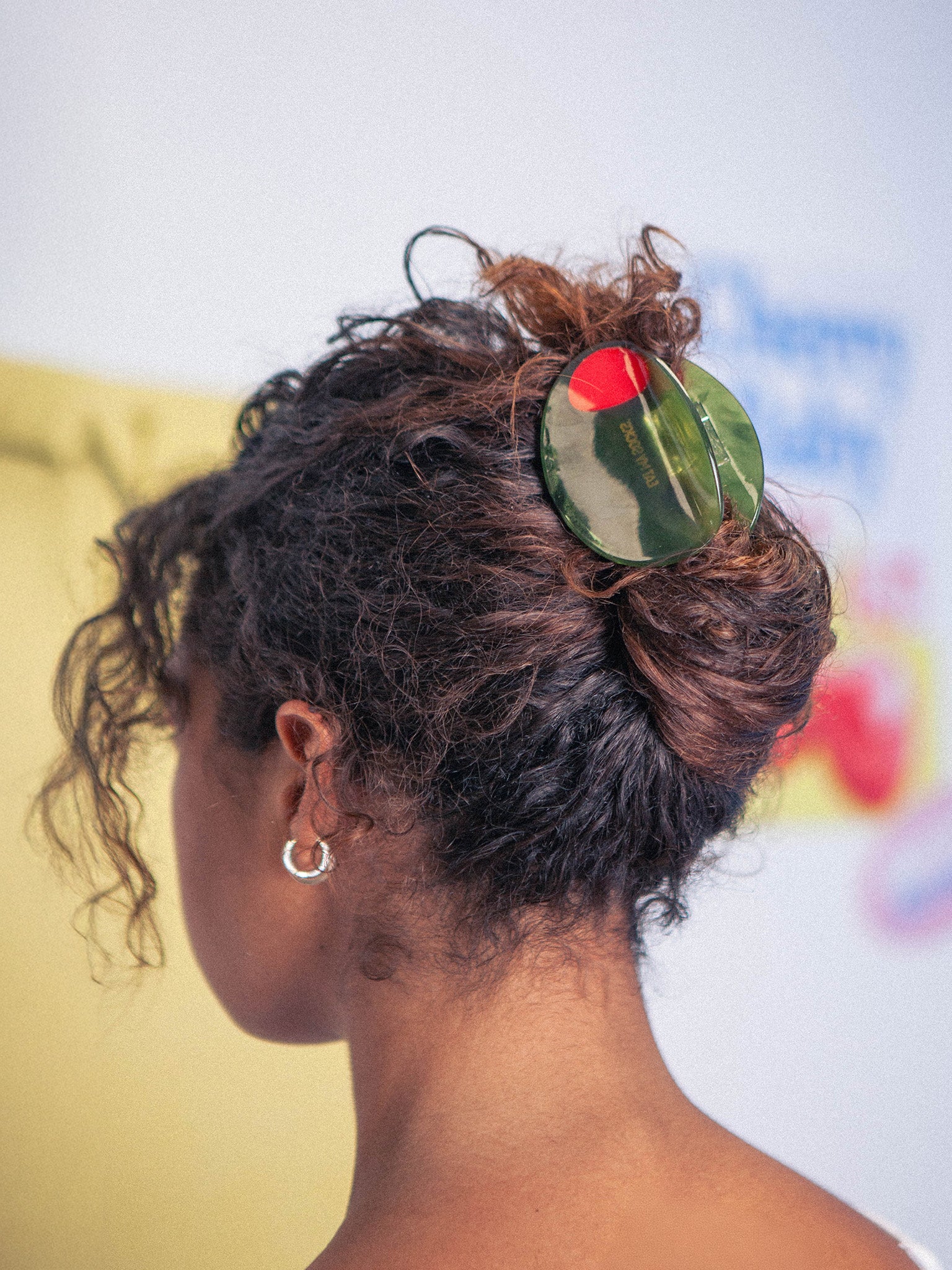 Keep it classy with the Olive Hair Claw! This elegant and quirky piece is perfect for adding a subtle twist to your style.