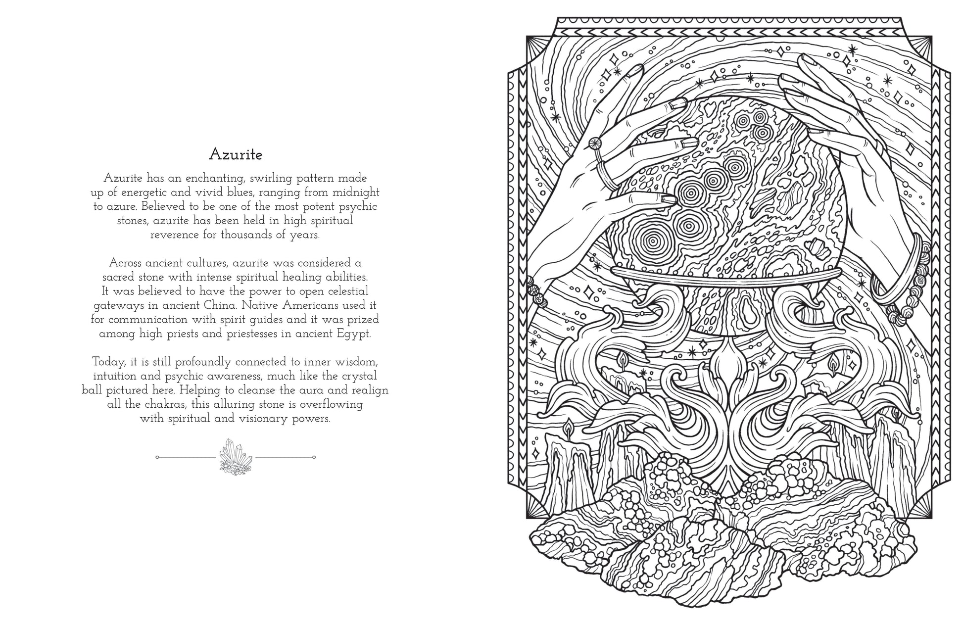 Explore the mystical qualities of 45 crystals, gems and minerals, with stunning images to colour that invoke their powerful meanings. Each intricate illustration sits opposite a page of text that explores the multifaceted significance of each gem, the guidance it might offer readers, the associated chakra, and tailored advice on the colours to use. The back cover features colour photos of all the crystals, so readers can create accurate depictions if they wish.