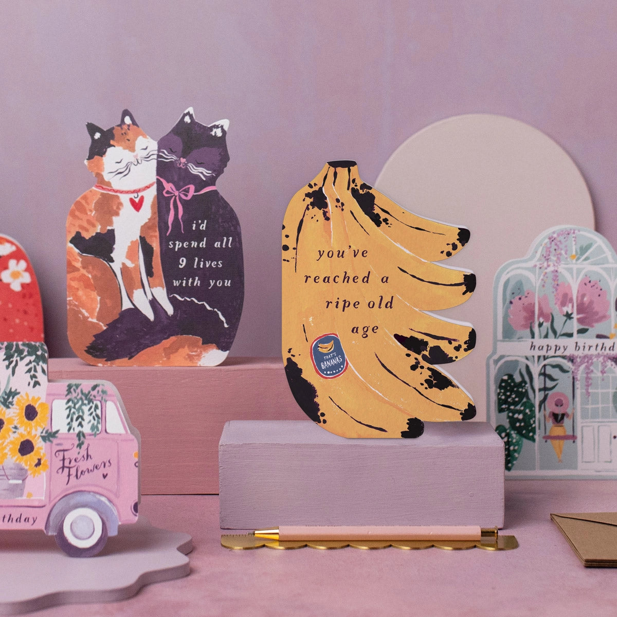 These bananas have seen better days! This banana-shaped birthday card is a cheeky gift to say "you've reached a ripe old age" to a friend or family member with a sense of humour about getting older. The inside of the banana birthday card is blank, with space to share that bananas only get sweeter with age.