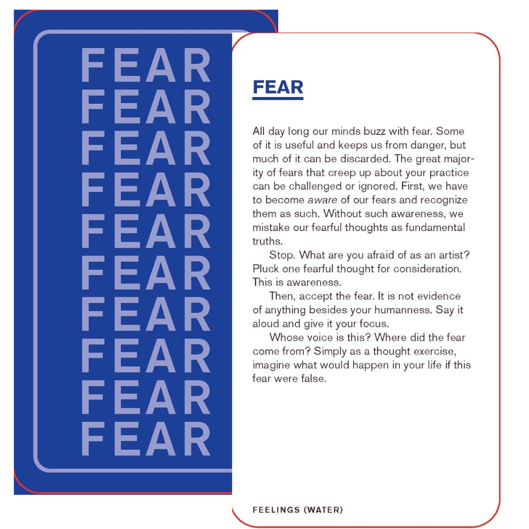 This card deck, identifies common traps, feelings, myths, and blocks that artists encounter, and offers ways to work through them. Each card describes an obstacle and poses questions and exercises to transform that obstacle into a source of inspiration and energy. Whether you seek guidance on a specific topic or use the deck as an oracle tool to inspire growth, The Artist's Deck will support you as you work through the creative challenges that come your way.